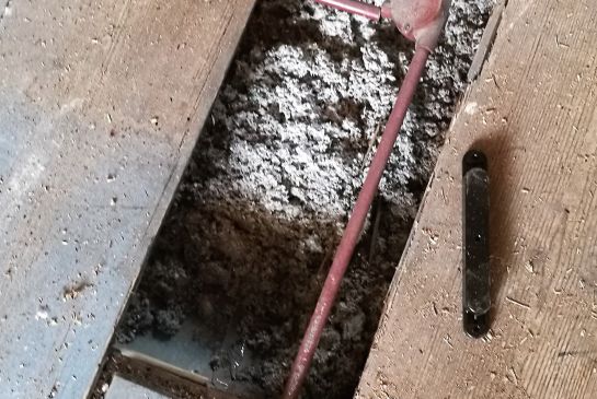 Isolatiemateriaal traditioneel onder de vloer bevestigd