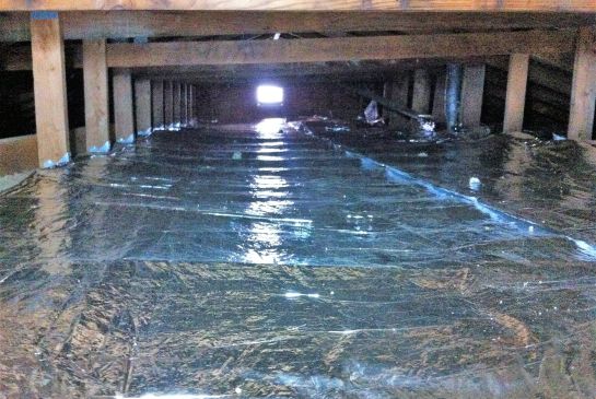 - Bij kruipruimten met een hoge vochtbelasting is het aan te bevelen om een vochtregulerende bodembedekking aan te brengen zoals schelpen, kleikorrels of een bodemafdekker in de vorm van bijvoorbeeld een folie.